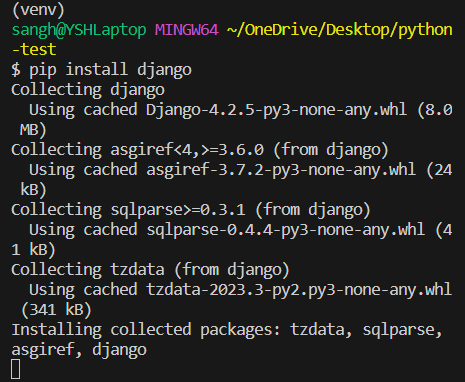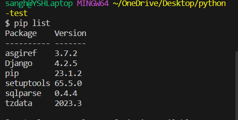 그리고 다시 pip list 를 실행하면 아래와 같이 django와 함께 몇가지가 설치가 된것을 확인할 수 있다.