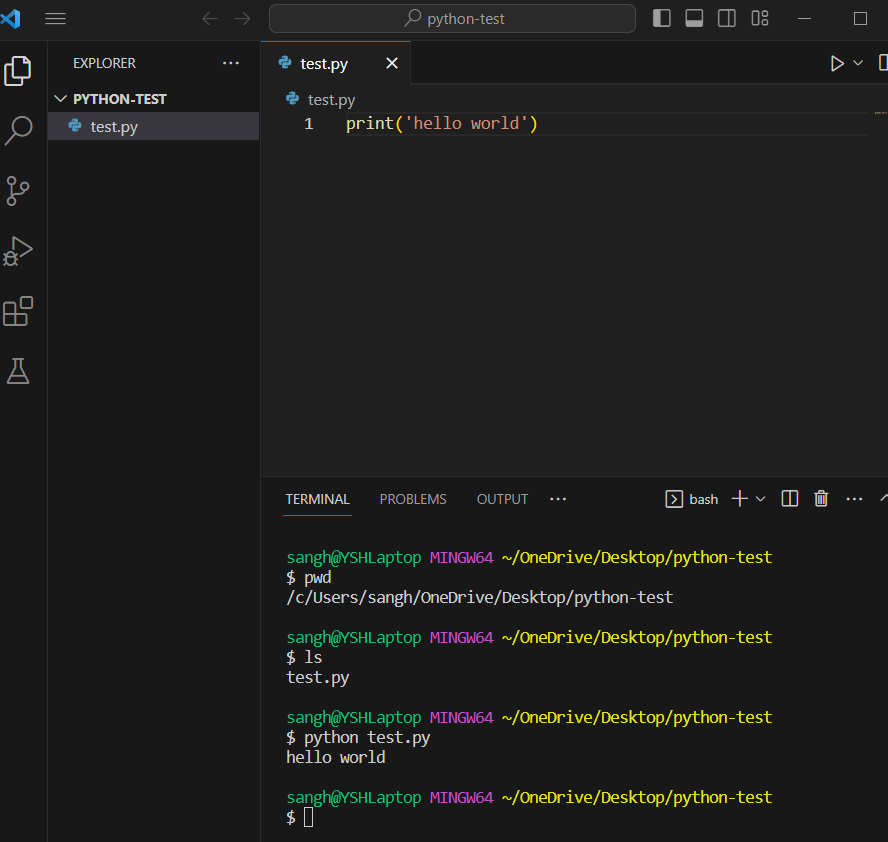python 파일명(test.py) + enter = 값 나옴. (저장하고 진행하기)