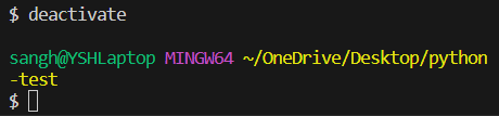 그리고 가상환경 파일에서 나오기 위해서는 deactivate 실행하기