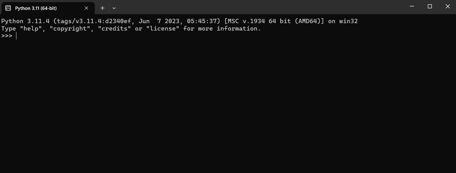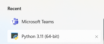 시작메뉴에서 ‘Python 3.11(64-bit)’검색하면 아래와 같이 나온다. 클릭!