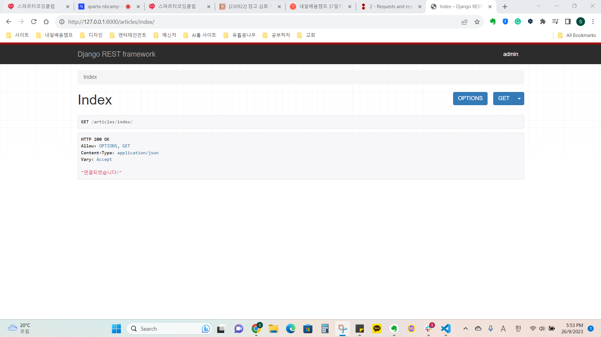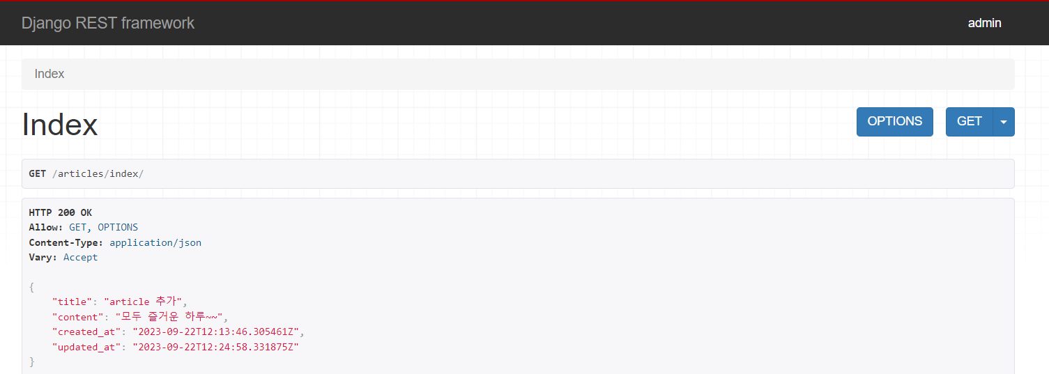 다음시간에는 serializer을 이용해서 모델 만들어보고 왜 이게 편한지 배워보자 ✌