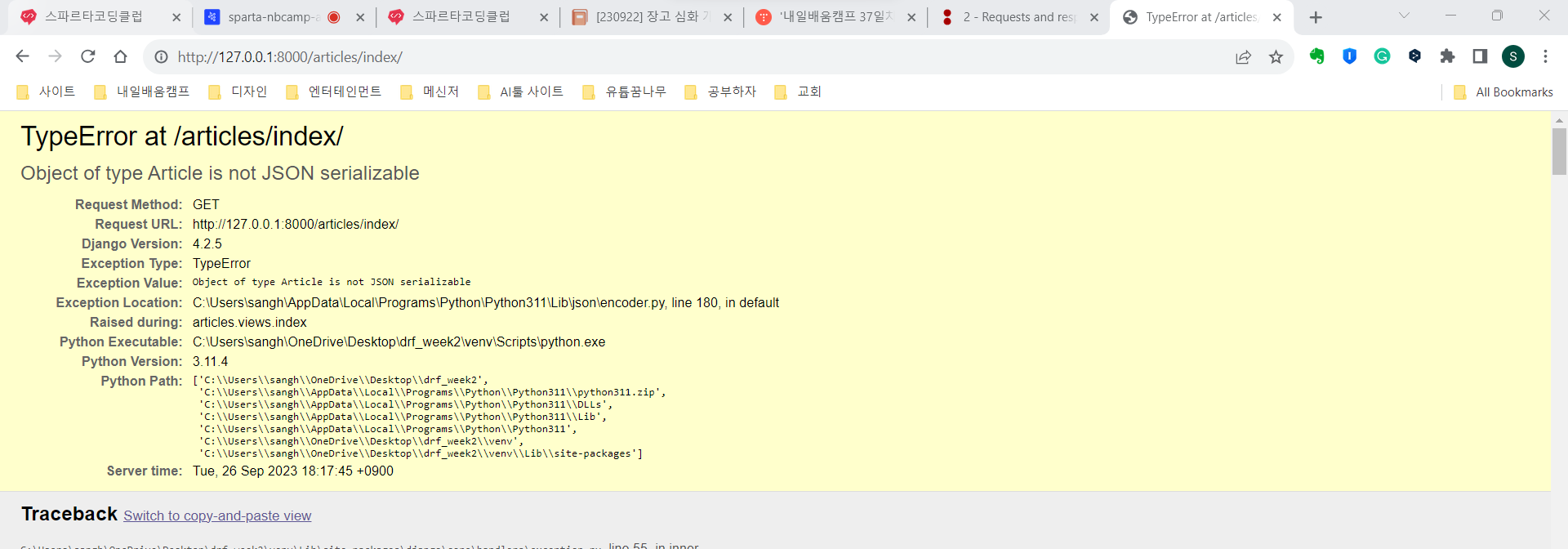 | 내일배움캠프 35일차 TIL_django 기초강의를 못들었다면... (0) | 2023.09.22 |
