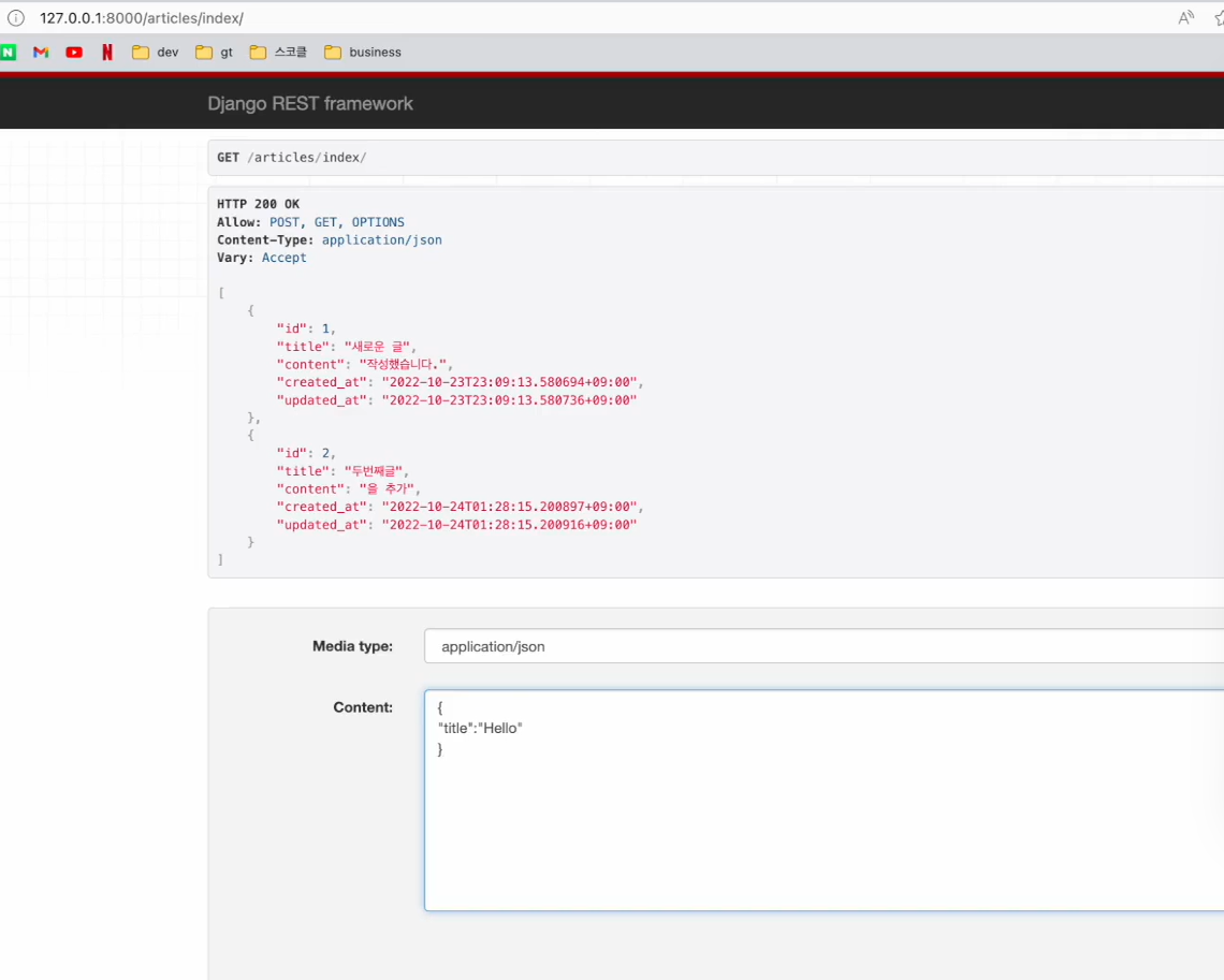 모델 시리얼라이저를 활용해서 article 데이터를 받아보도록 하자!