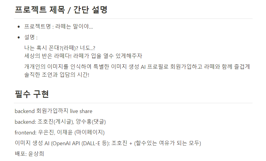 아래는 우리조(스파게티팀)의 프로젝트 기획이다.
