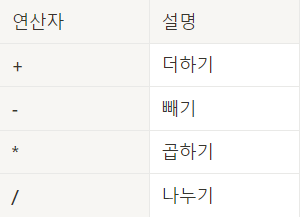 아주 기본적인 숫자 연산 종류는 아래와 같다.