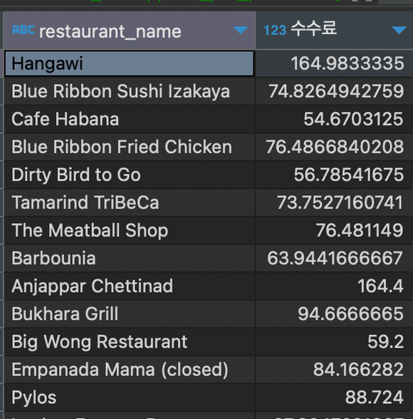 - 음식점의 평균 단가별 segmentation 을 진행하고, 그룹에 따라 수수료 연산하기